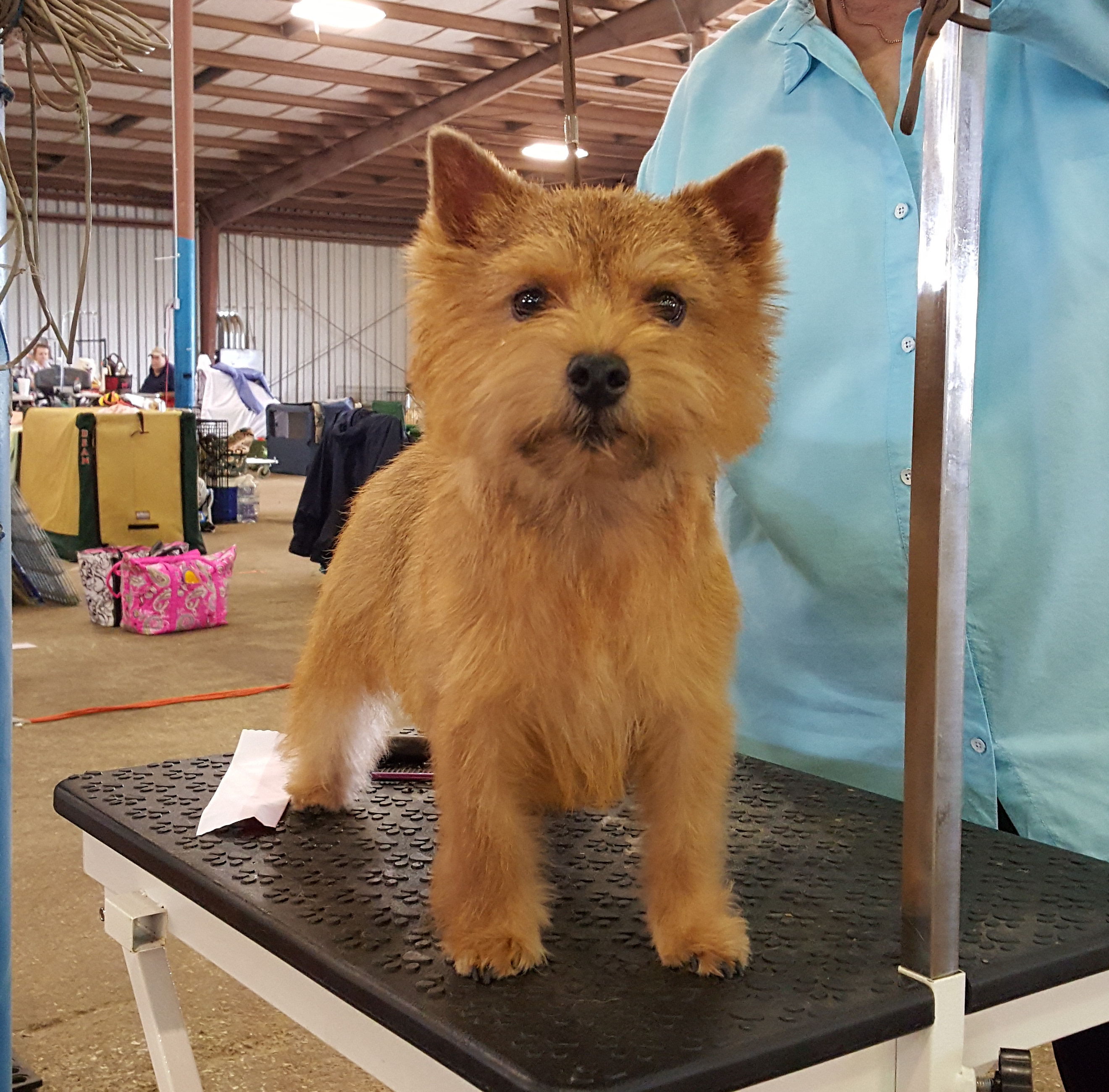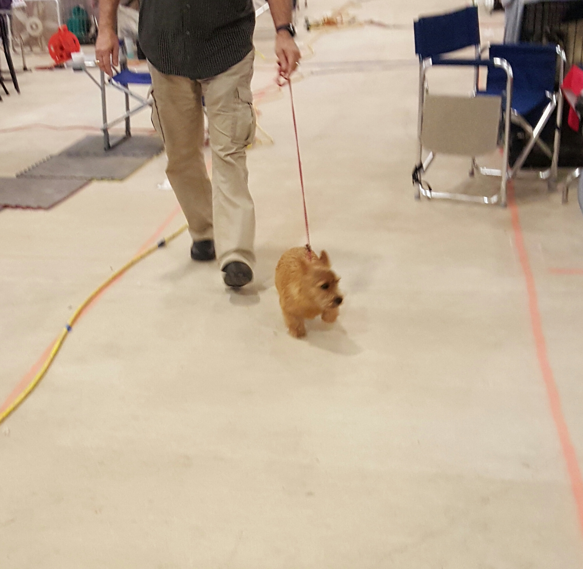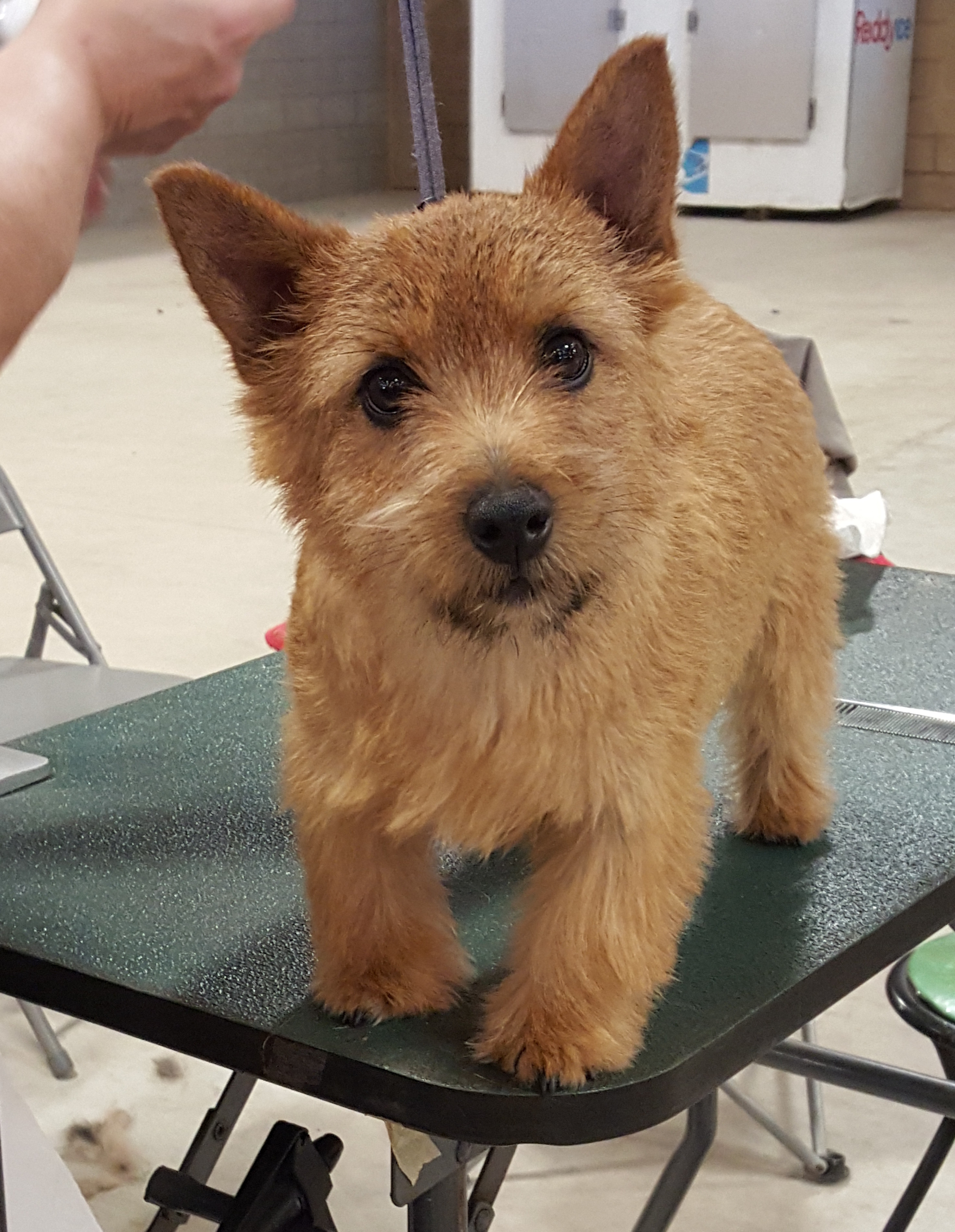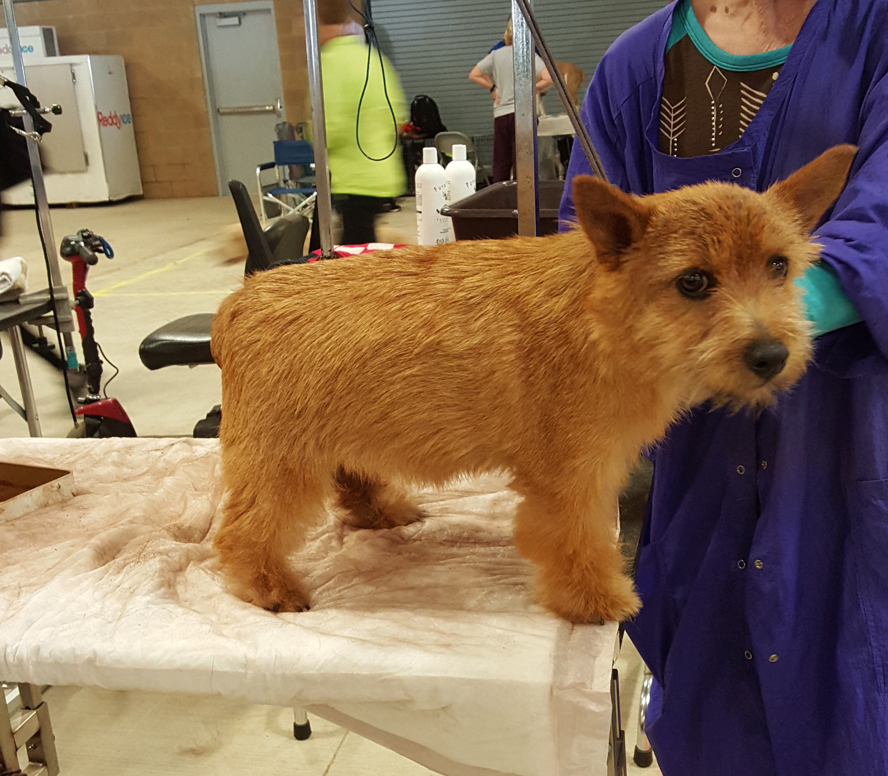 We had an early show the next morning where Gabby did wonderfully earning Best of Opposite Sex. She would repeat that Sunday. So there’s a picture of her on the beauty table waiting her turn. The other Norwich kids got to tour the show and shops and see all sorts of things. Puppy nose’s were working overtime taking it all in. They had fun and naps were the order of the day.