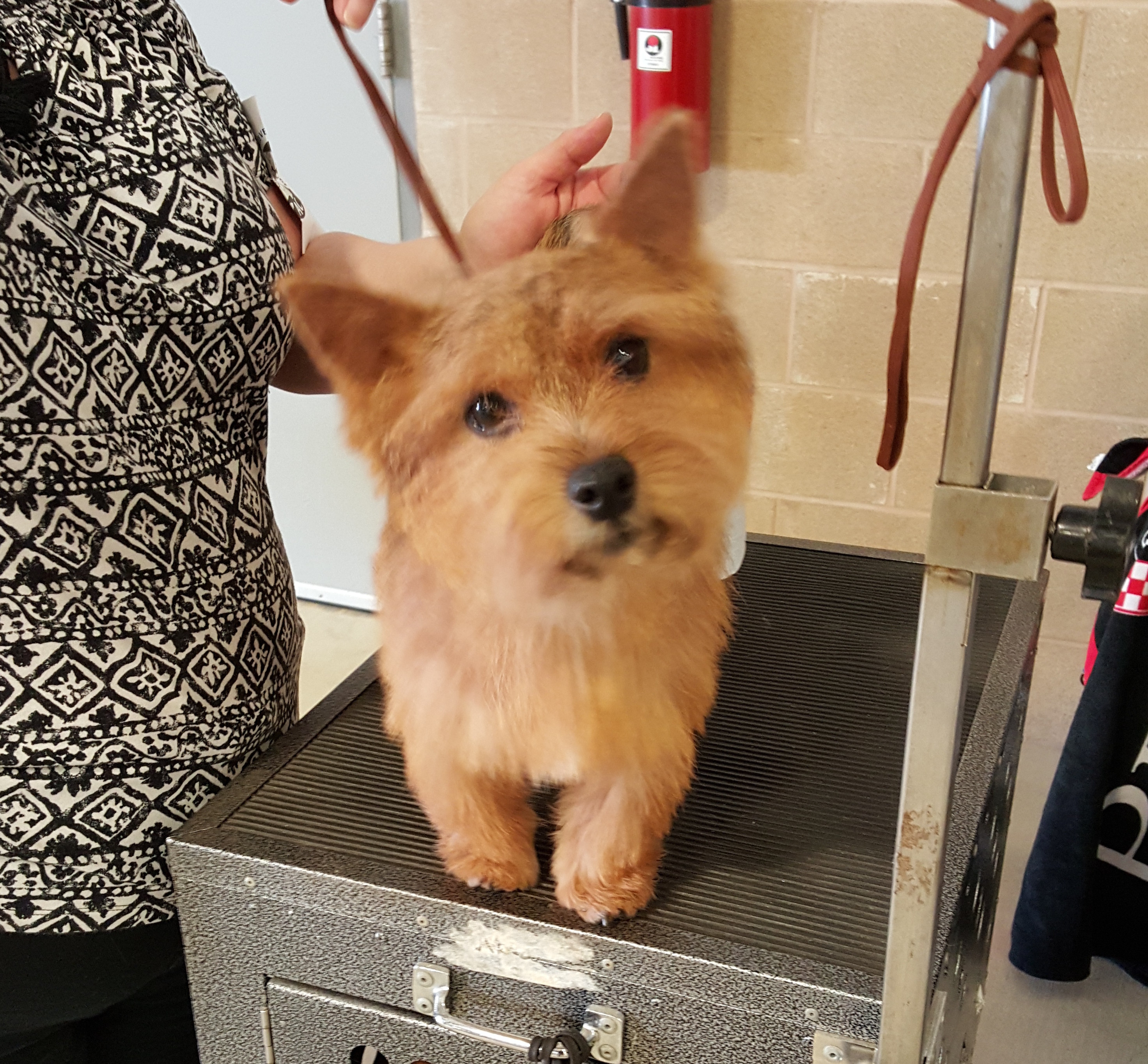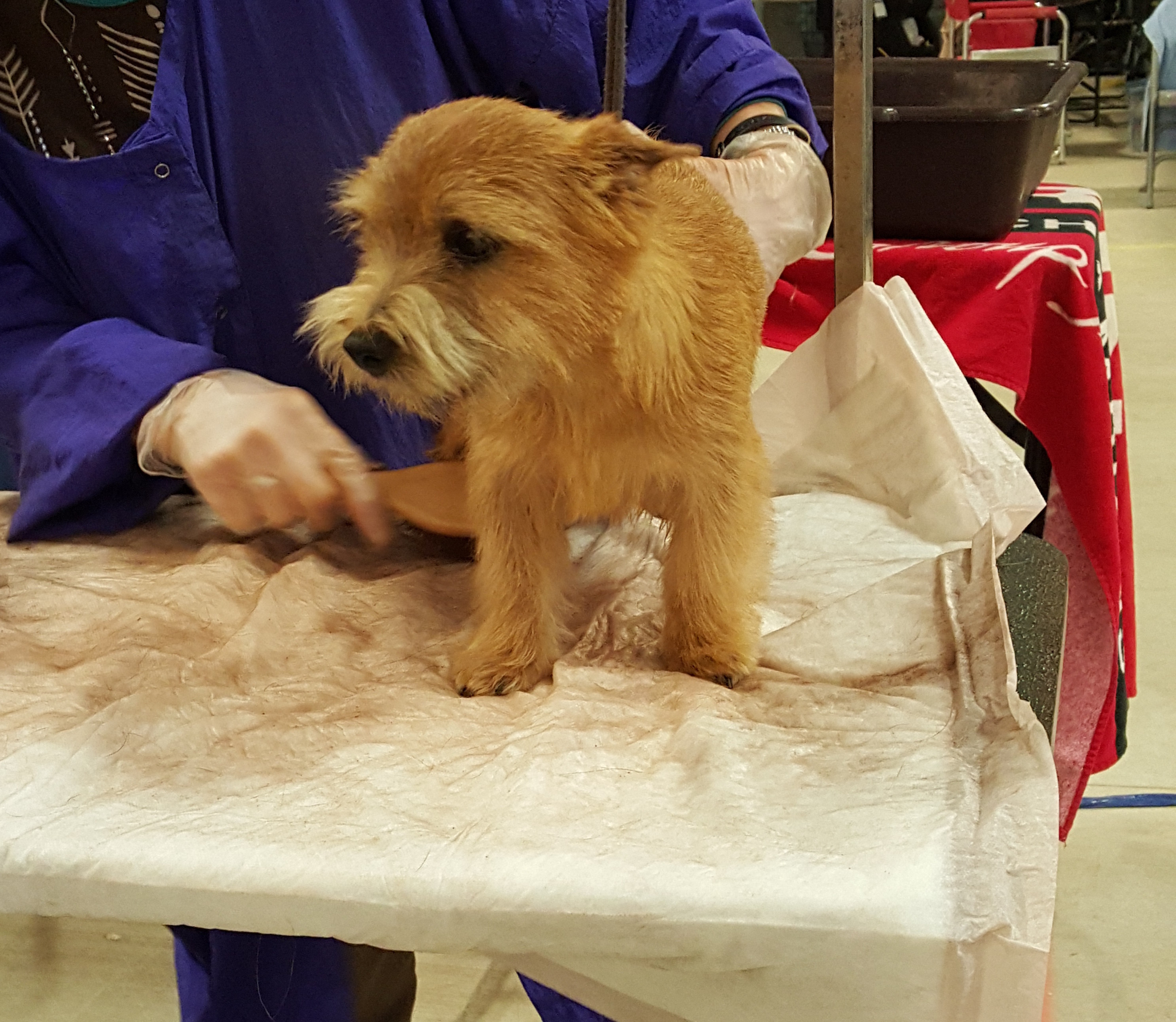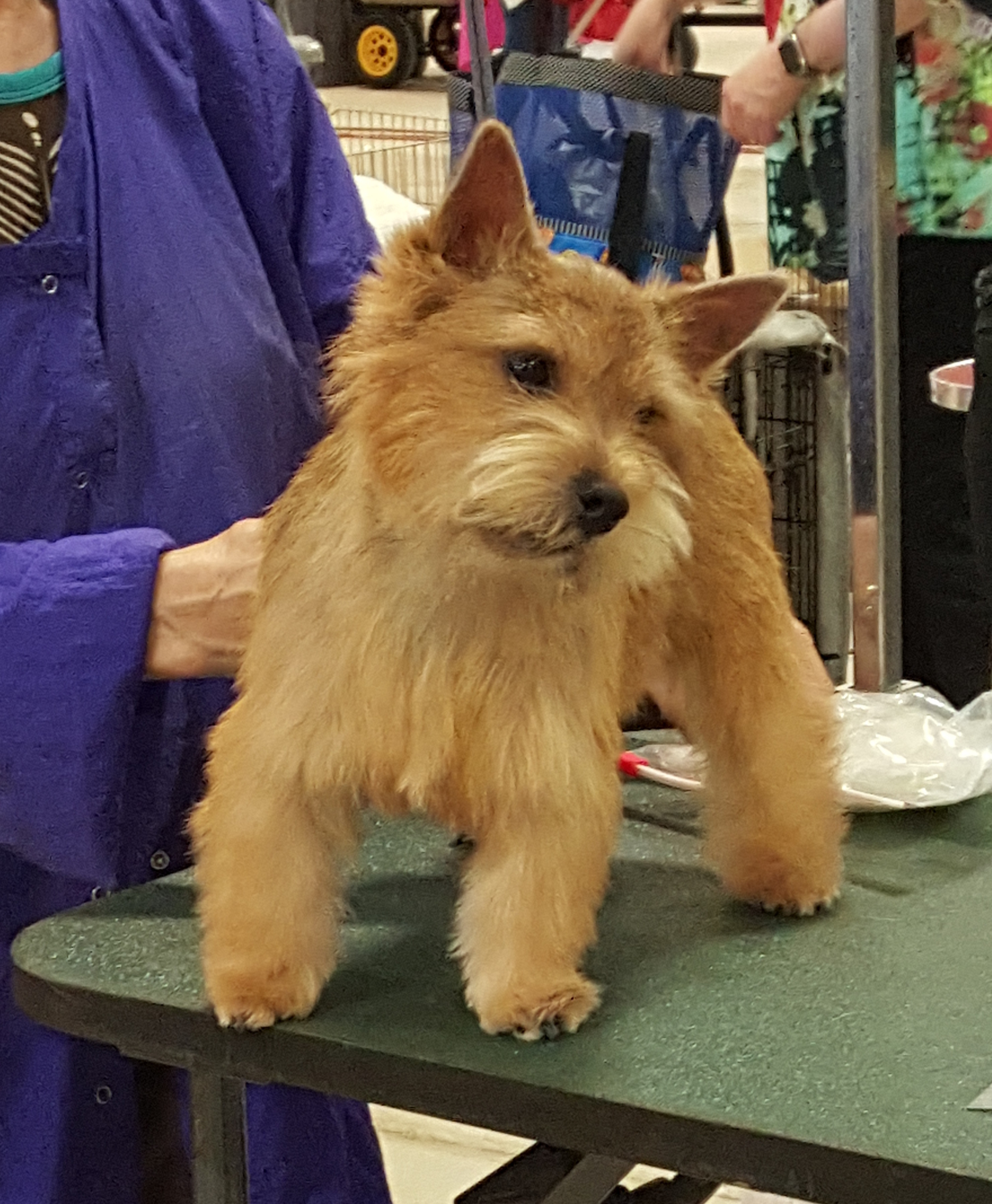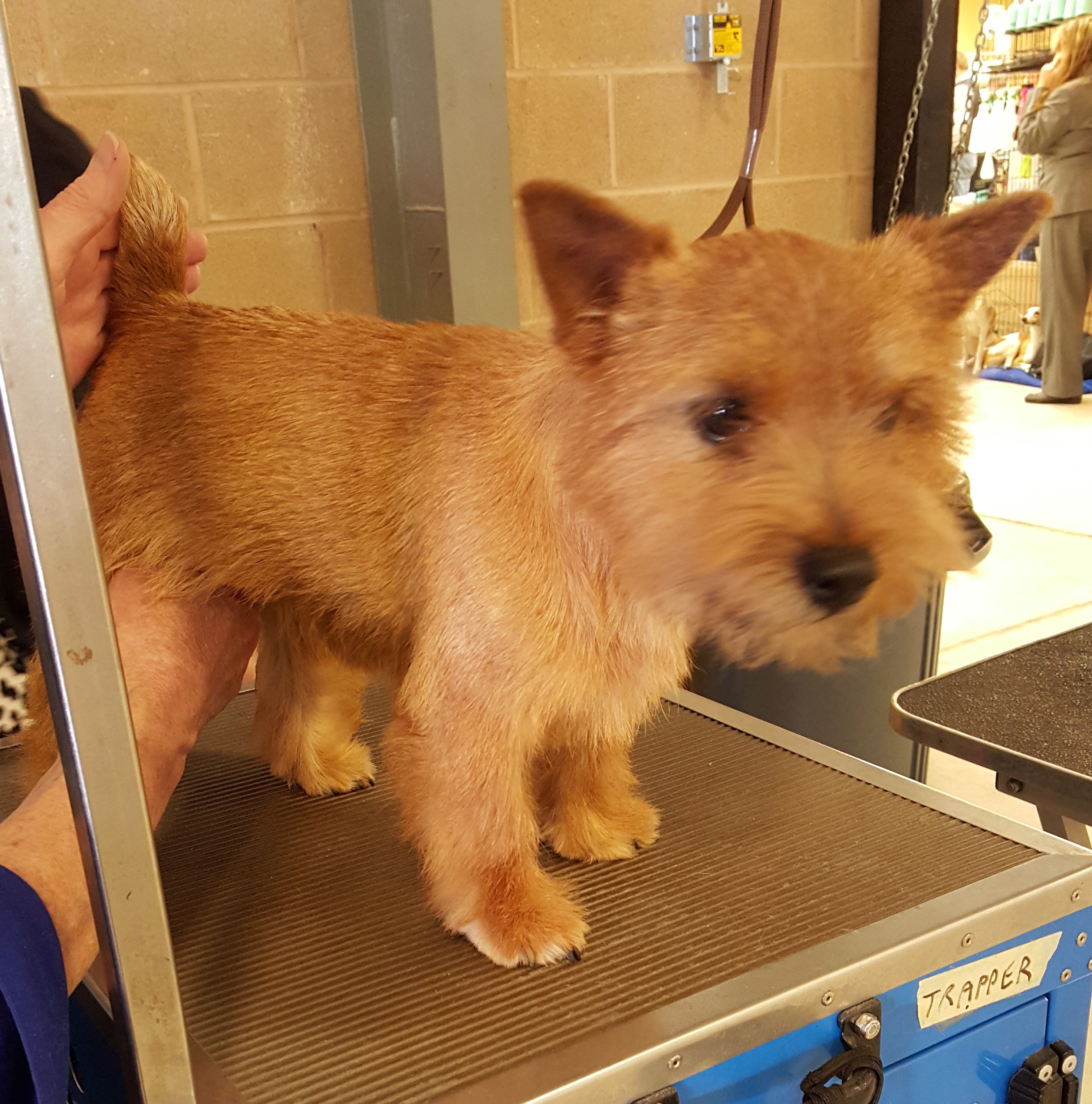 We had an early show the next morning where Gabby did wonderfully earning Best of Opposite Sex. She would repeat that Sunday. So there’s a picture of her on the beauty table waiting her turn. The other Norwich kids got to tour the show and shops and see all sorts of things. Puppy nose’s were working overtime taking it all in. They had fun and naps were the order of the day.